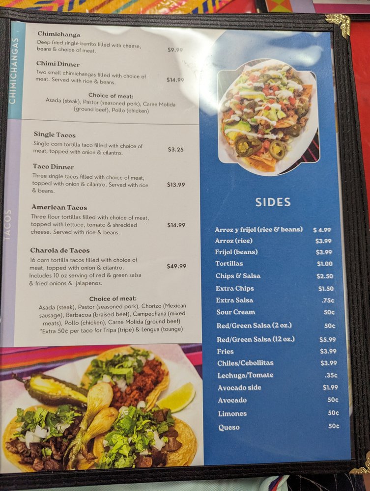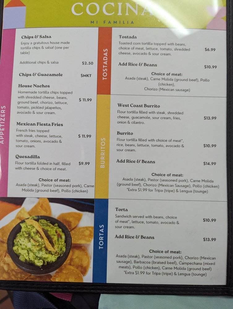 Cocina Mi Familia Menu